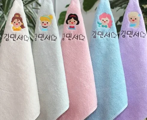 아이맘 어린이집수건 이름자수 고리타올 코마사 항균 40수, 공주 프렌즈, 5개