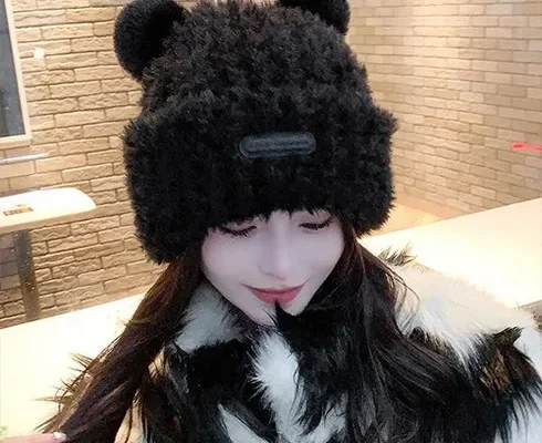 지구봄 양털 뽀글이 곰돌이 모자