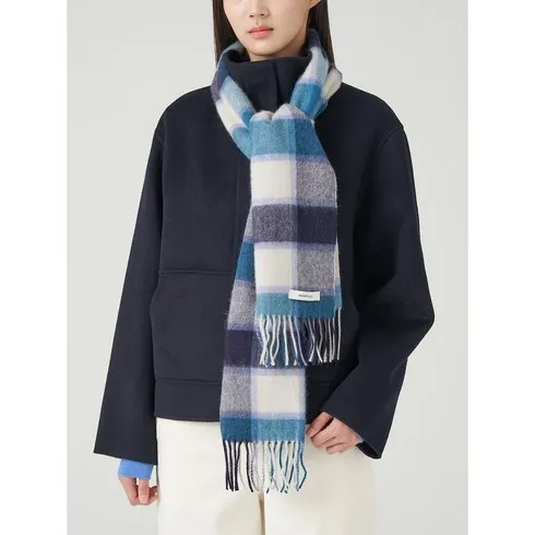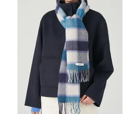 시즌오프[빈폴ACC](BE3X84W01P)울 자전거 컬러자수 솔리드 머플러 – 블루