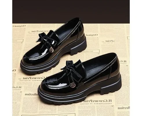 슈리오 여성 소가죽 금장 리본 발편한 로퍼 4cm