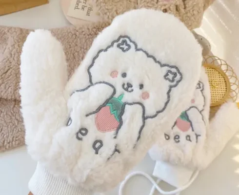 쿠로미 케릭터 뽀글이 스웨이드 아동 장갑 미끄럼방지 바닥 스마트폰 사용이 가능한 스마트 터치 기능
