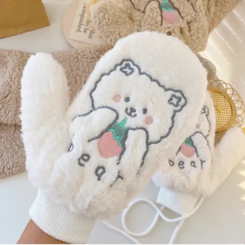 iPSTO 귀여운 왕눈이 개구리 벙어리장갑 뽀글이 양털 여성 학생 방한 겨울장갑 보온 털장갑 핸드워머