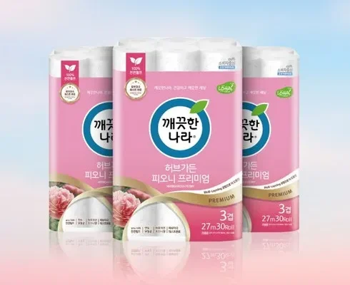 [깨끗한나라] 허브가든 피오니 프리미엄 화장지(3겹) 30롤 x 3팩, 상세 설명 참조, 상세 설명 참조